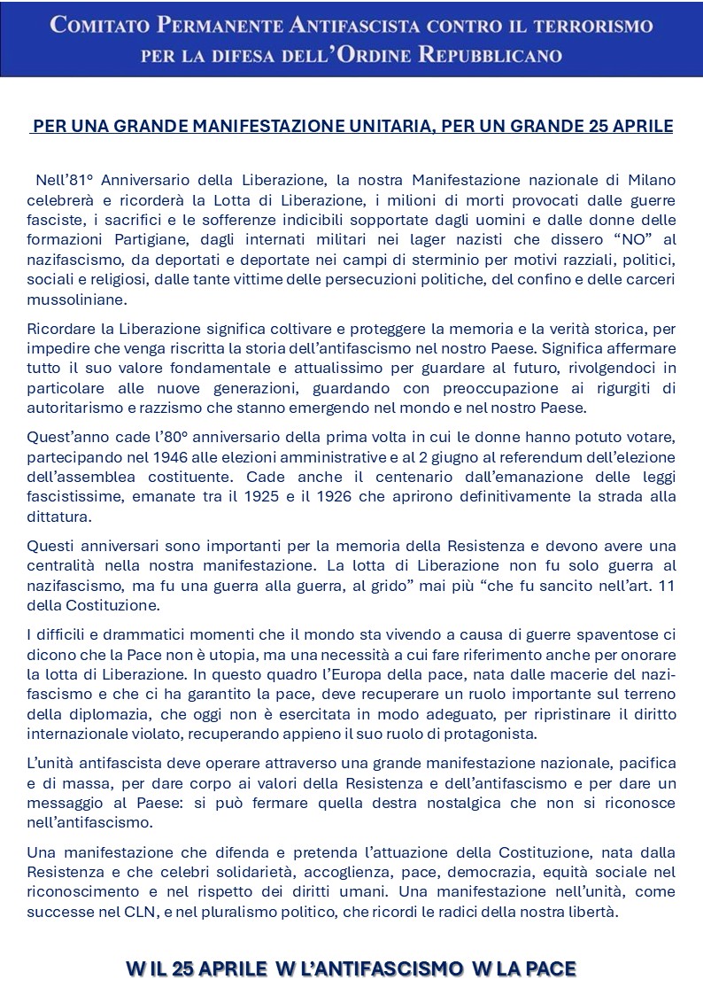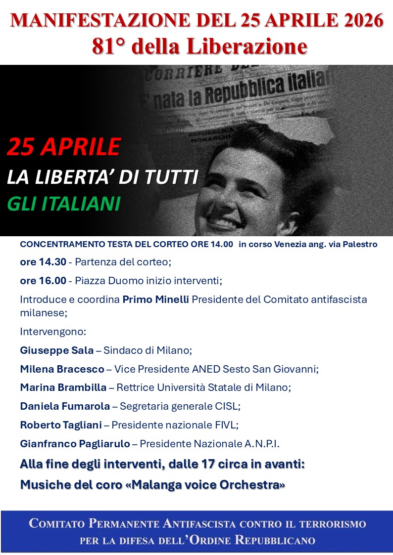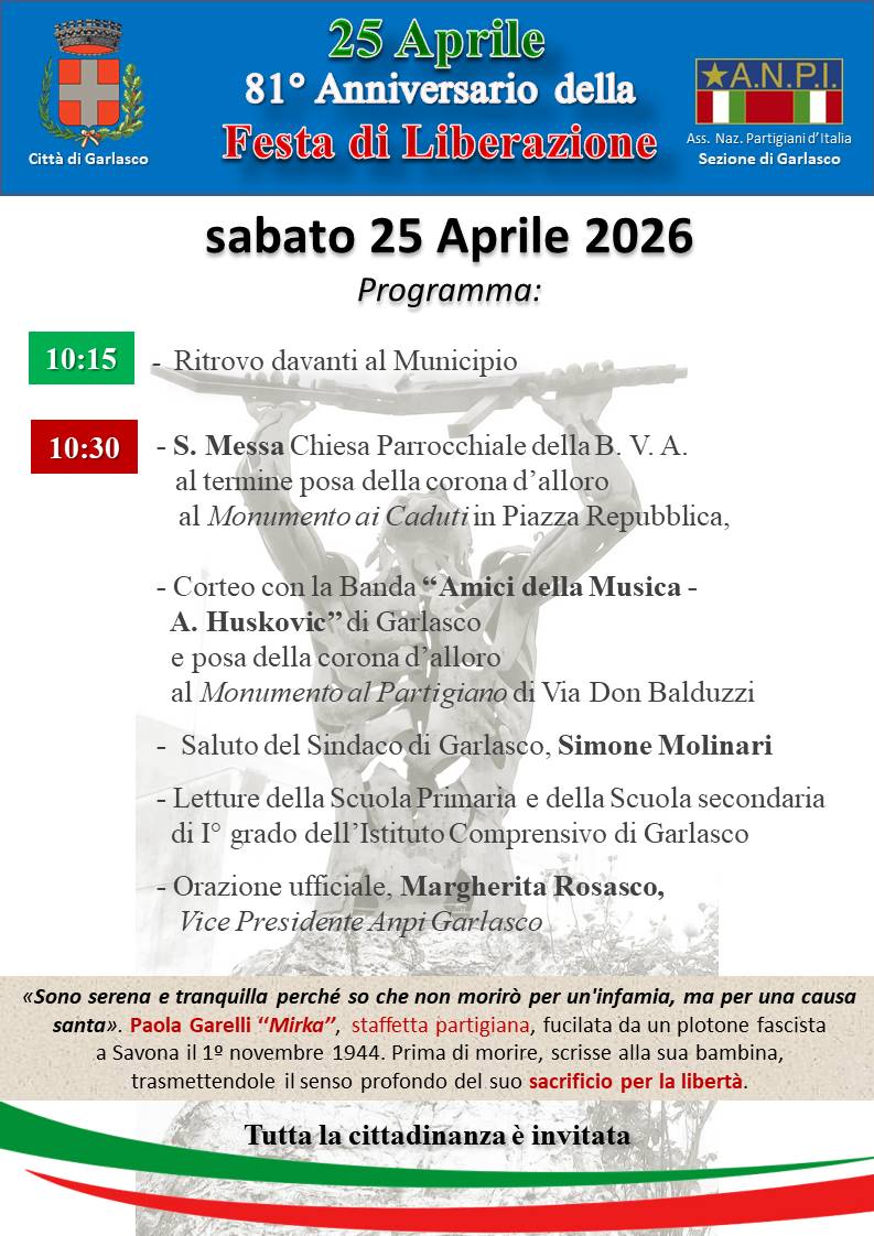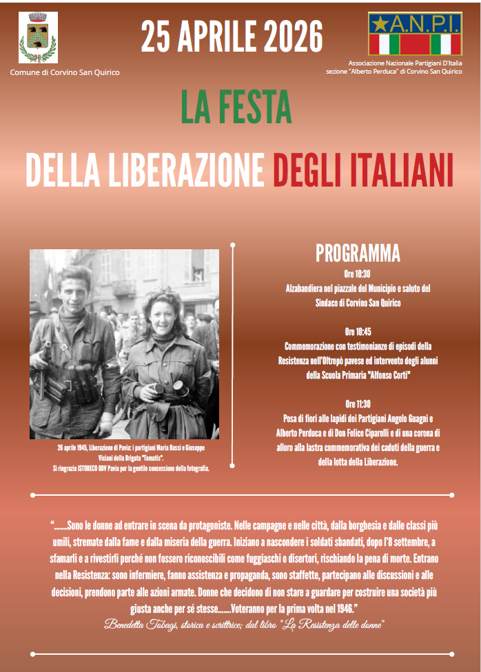 25 aprile 2026 Pubblicato il 22 Aprile 2026 da anpipavia Festa della Liberazione – Eventi 25 apr Anpi Corvino SQDownload 25 apr belgioiosoDownload 25 apr Bressana BDownload 25 aprile 2026 Bastida pancaranaDownload 25 Aprile PAVIA 2026Download 25 aprile-VOGHERADownload aprile 2026 BroniDownload Anpi Nazionale VOLANTINO 25 APRILE A4Download